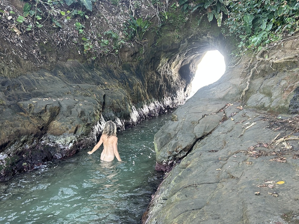 From Husband: here is my wife naked in a natural ocean tunnel close to our house. There is so much beautiful nature around here.