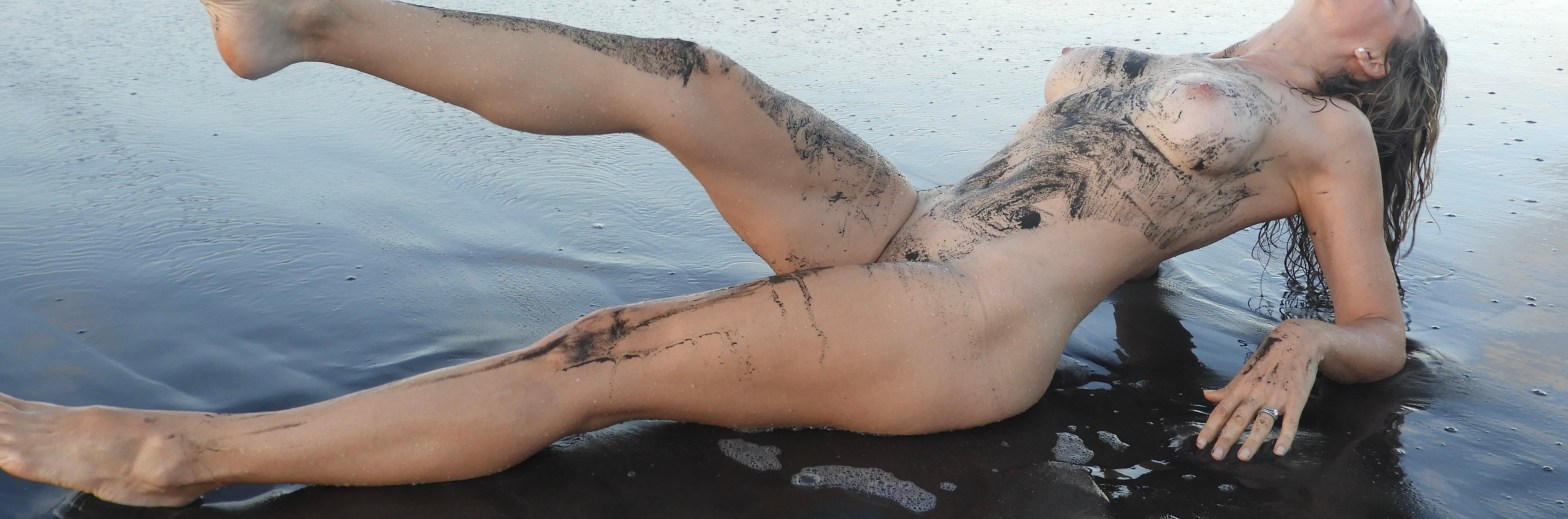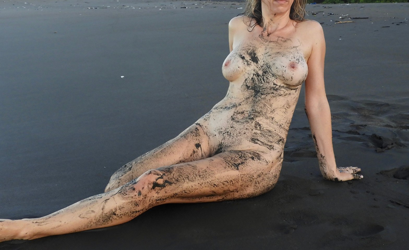 Here is my wife completely sandy and naked relaxing on a deserted beach.