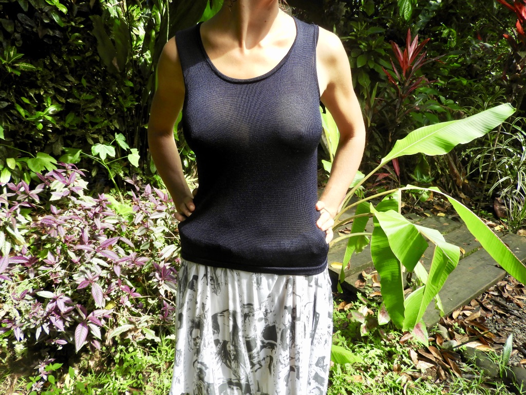 I really like this dark blue see through shirt, especially when the sun is shining and she’s not wearing anything underneath.